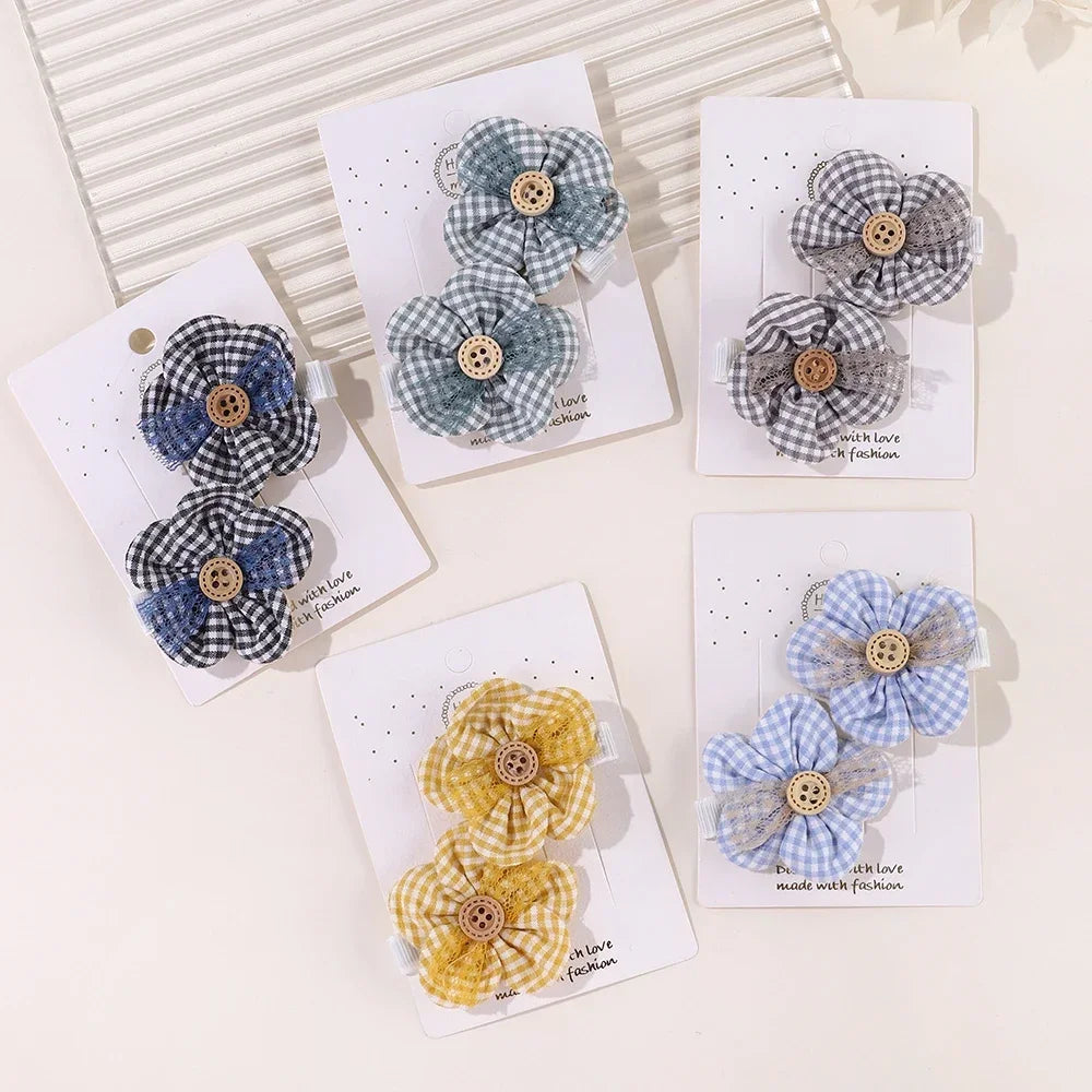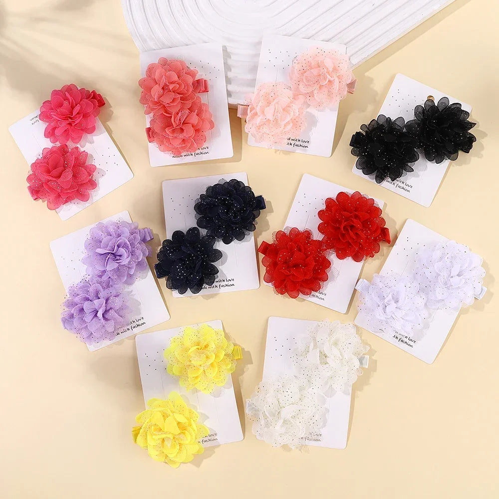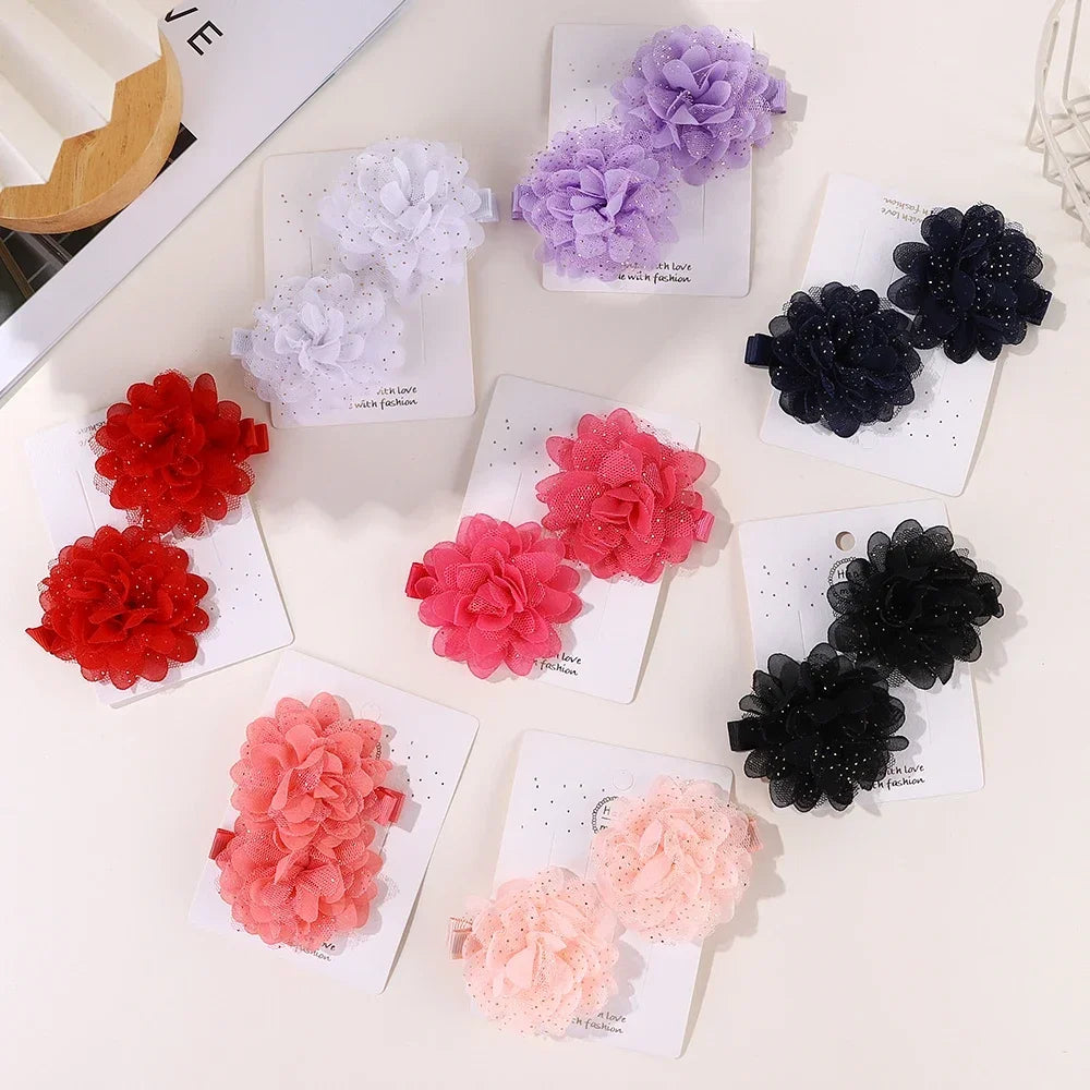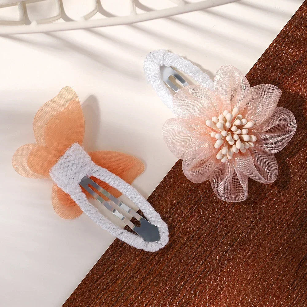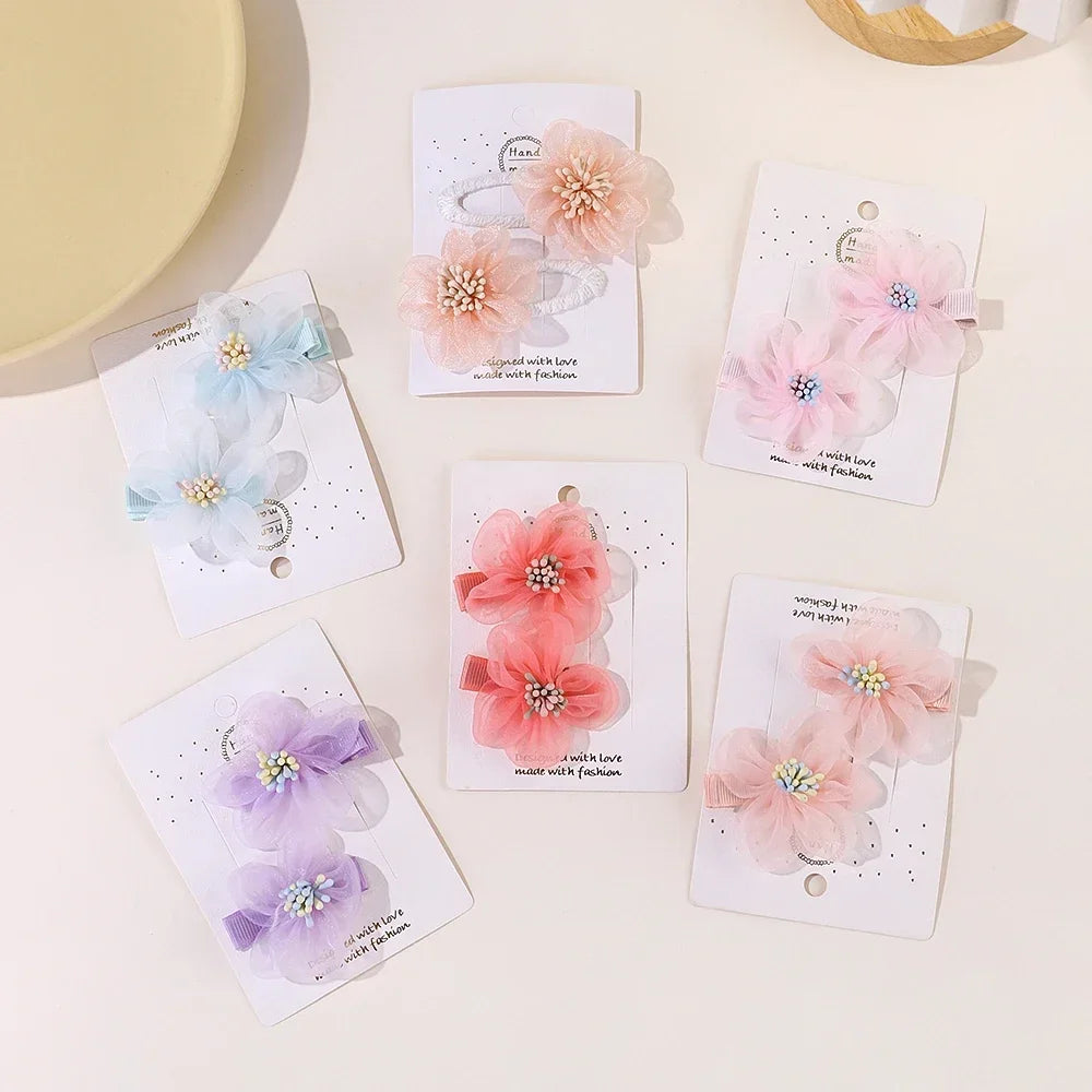 2PCS Girls Hair Clips Set – Flower Bow & Star Nylon Mesh🌸