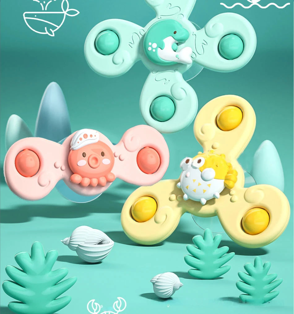 Make any moment fun with our 3-piece Child's Bathroom Bath Toy Set! This set is perfect for keeping little ones entertained anywhere β during bath time, at the park, in the car, on the plane, or in the stroller. Each toy is designed to stimulate babiesβ sensory and motor skills, featuring cartoon animal characters, a spinning top, and suction cups that allow for easy attachment to surfaces like walls or tables.