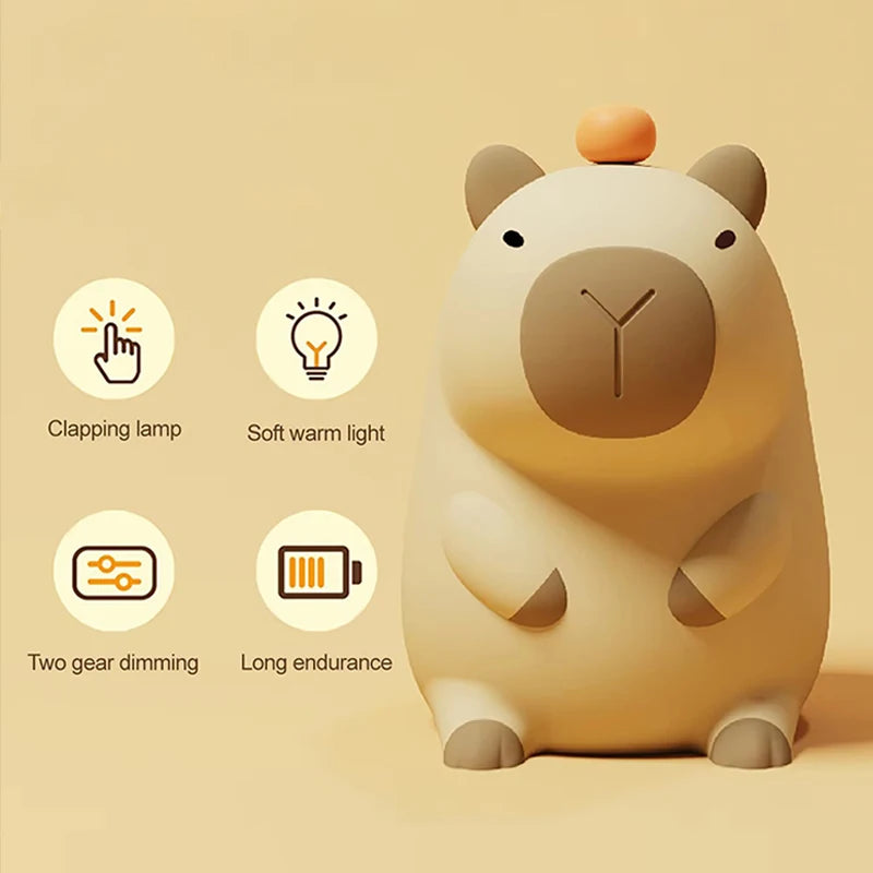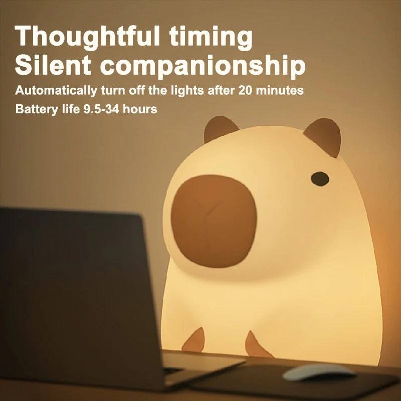 - Touch & Squeeze Control: Effortlessly switch between brightness levels by simply patting or squeezing the capybara.